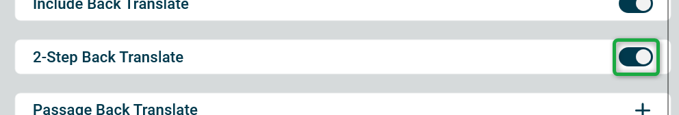 Passage and Segment back translations are by default enabled but can be turned off with the toggle switch.