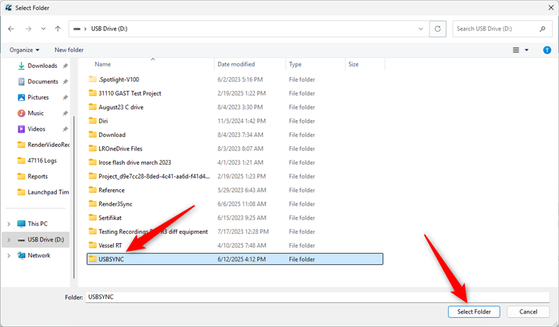 In Render choose “Add Project From Computer” and then open the USB drive folder “USBSYNC” and then click/tap on the folder inside. Then click/tap “Select Folder”.