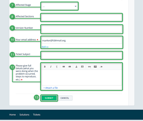 - Alamat email anda yang terdaftar di Helpdesk. Alamat ini akan terisi secara otomatis, namun anda dapat mengubahnya jika anda menginginkannya. Anda juga memiliki opsi untuk Menambahkan CC untuk menambahkan lebih banyak alamat email untuk melibatkan lebih banyak orang, jika perlu.